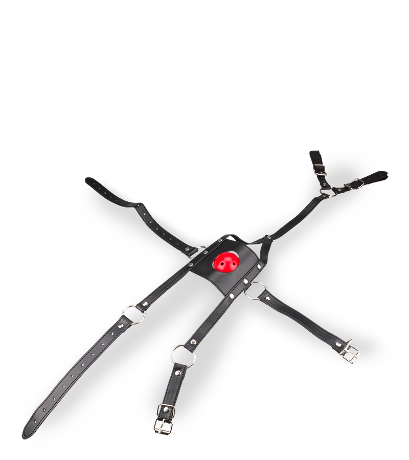This mask is ideal for sexual submission and bondage play. Slip it over your sub's face so that the ball gag rests in their mouth, preventing them from speaking. The straps are made of imitation leather and are adjustable to fit any size head.