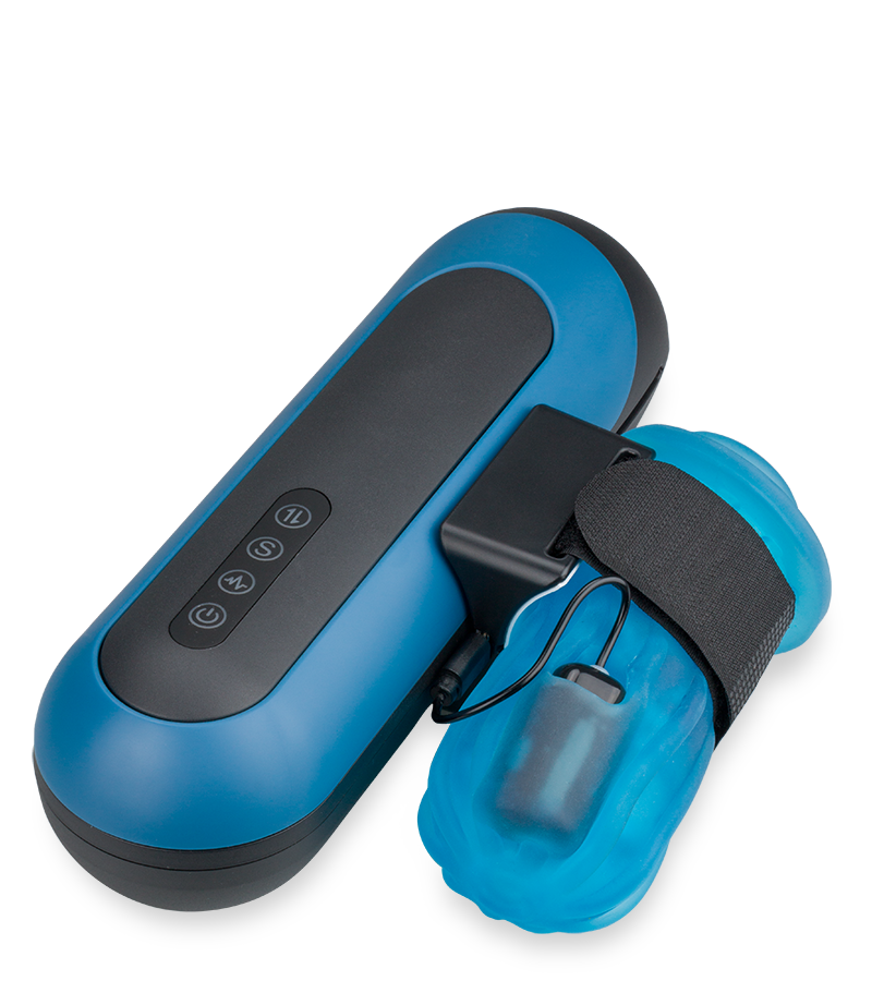 2. Install the sleeve or your own pocket pussy, then adjust the tightness with the self-gripping strap.